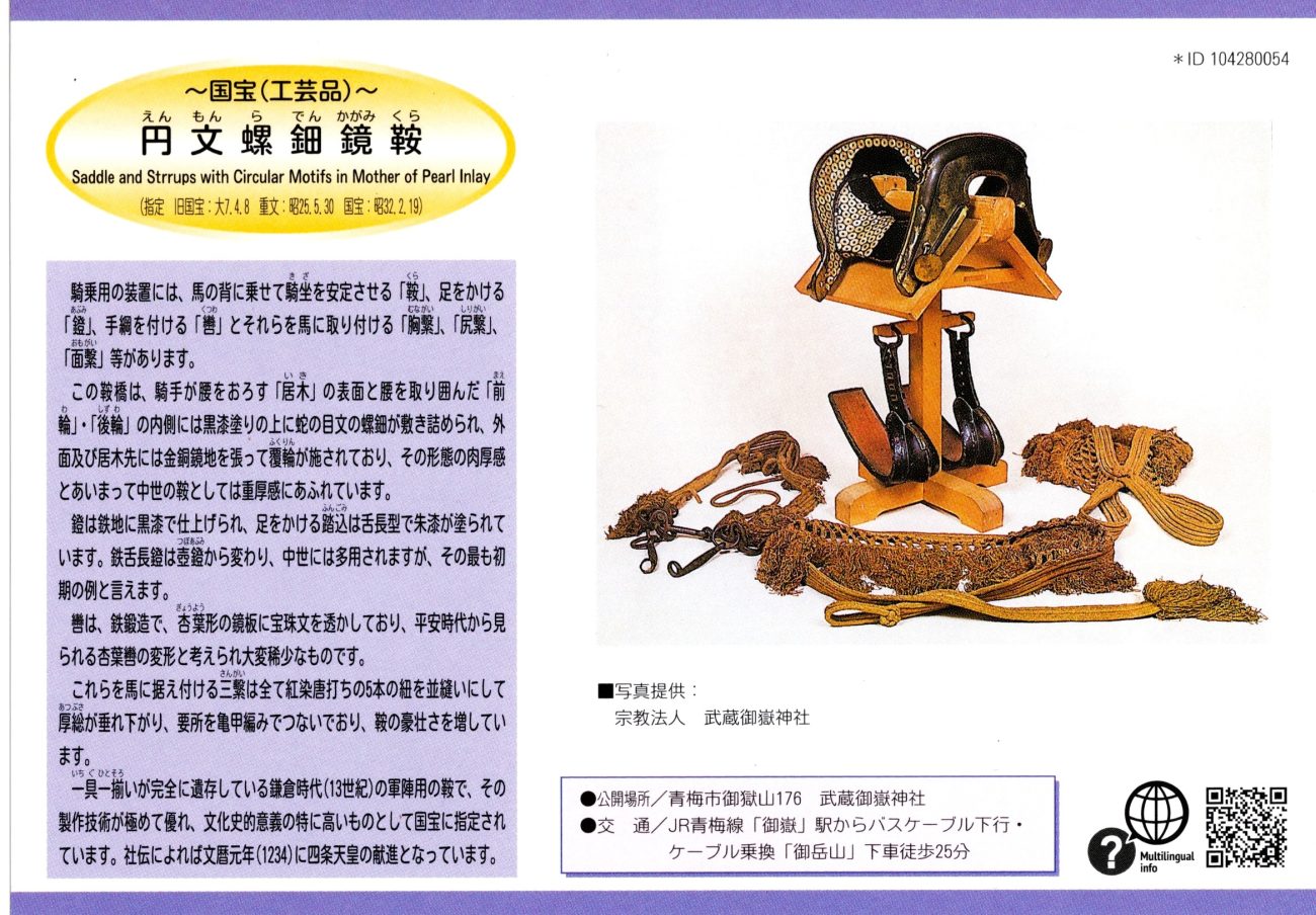 もう一つの国宝「円文螺鈿鏡鞍(えんもんらでんかがみくら)」は、